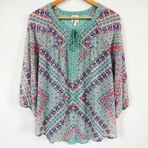 Sz L Anthropologie Fig Flower Floral Sheer Blous Clothes Design Paisley Print Anthropologie
